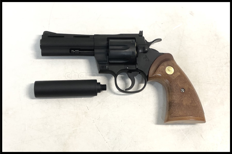 タナカワークス×人気漫画「シティーハンター」の限定コラボ品です。シティーハンターといえば主人公「冴羽獠」が扱うコルトパイソン。そのコルトパイソンをタナカワークスのペガサスシステムを搭載した4インチR-modelヘビーウェイトガスガンをベースにしてモデルアップされた一品です。もちろん作品内で使用されているサイレンサーを装着できるよう銃口内にネジ溝を切って再現。こだわり抜かれた限定品で、使用感も少ない美品でしたので満額でお買取させていただきました。
